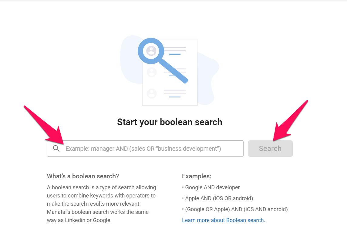 For example, in Manatal, after you have extracted all relevant candidates’ information, you will be able to do two types of searches - Boolean Searches or Advanced Searches. Below are the examples you can look for in your database.