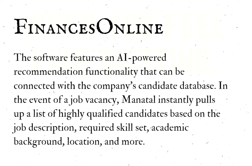 Guys, we could not have done it without you. Also, congrats to our IT team who are doing an amazing job making Manatal better every day. We are very proud of this award as it highlights how we imagined Manatal. If you have ever tried our ATS (Applicant Tracking Software) then you must know that you can get the hang of it in less than 30 minutes. And, if you have any questions, our customer service will be at your disposal to provide you quickly with the best answers. Sorting candidates has never been so easy. Our recommendation tools allow you to find great profiles in only a few clicks.