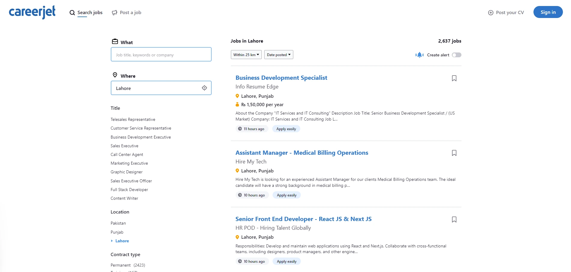 Careerjet is a job search engine that compiles listings from numerous websites, offering a wide range of job opportunities in Pakistan. It is particularly useful for recruiters looking to reach a large audience quickly. Careerjet’s advanced search options and user-friendly design make it a valuable tool for efficient recruitment.