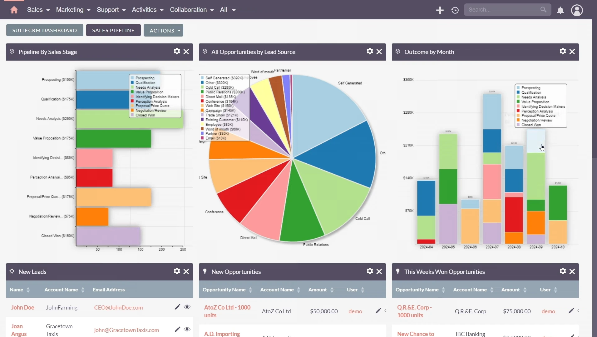 - Sales Pipeline Management: SuiteCRM provides a comprehensive view of the sales pipeline, enabling businesses to track opportunities from lead to closure.